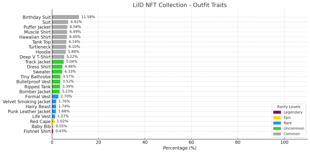 Each LilD NFT is unique due to its randomly generated combination of rarity traits, ensuring no two are exactly alike.